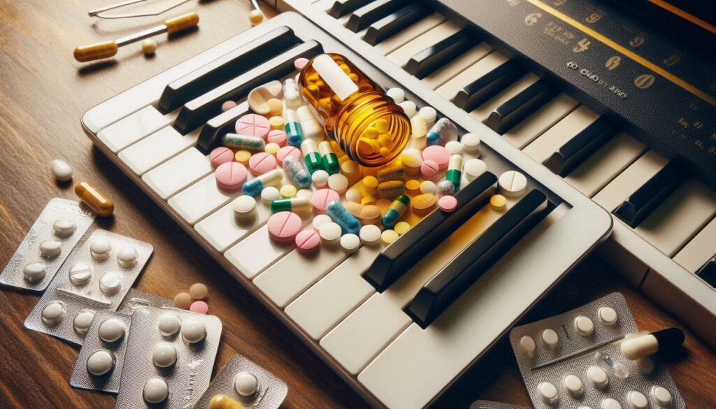 Numerous dosage forms and aspects of drug production, such as percolation, are also represented. The musical pieces are drawn from a wide cross-section of musical genres, e.g., pop, pop, rock, county, rap, hip-hop, metal. The lecture discusses exemplary representatives of the “pharmaceutical playlist” with examples of lyrics and music.