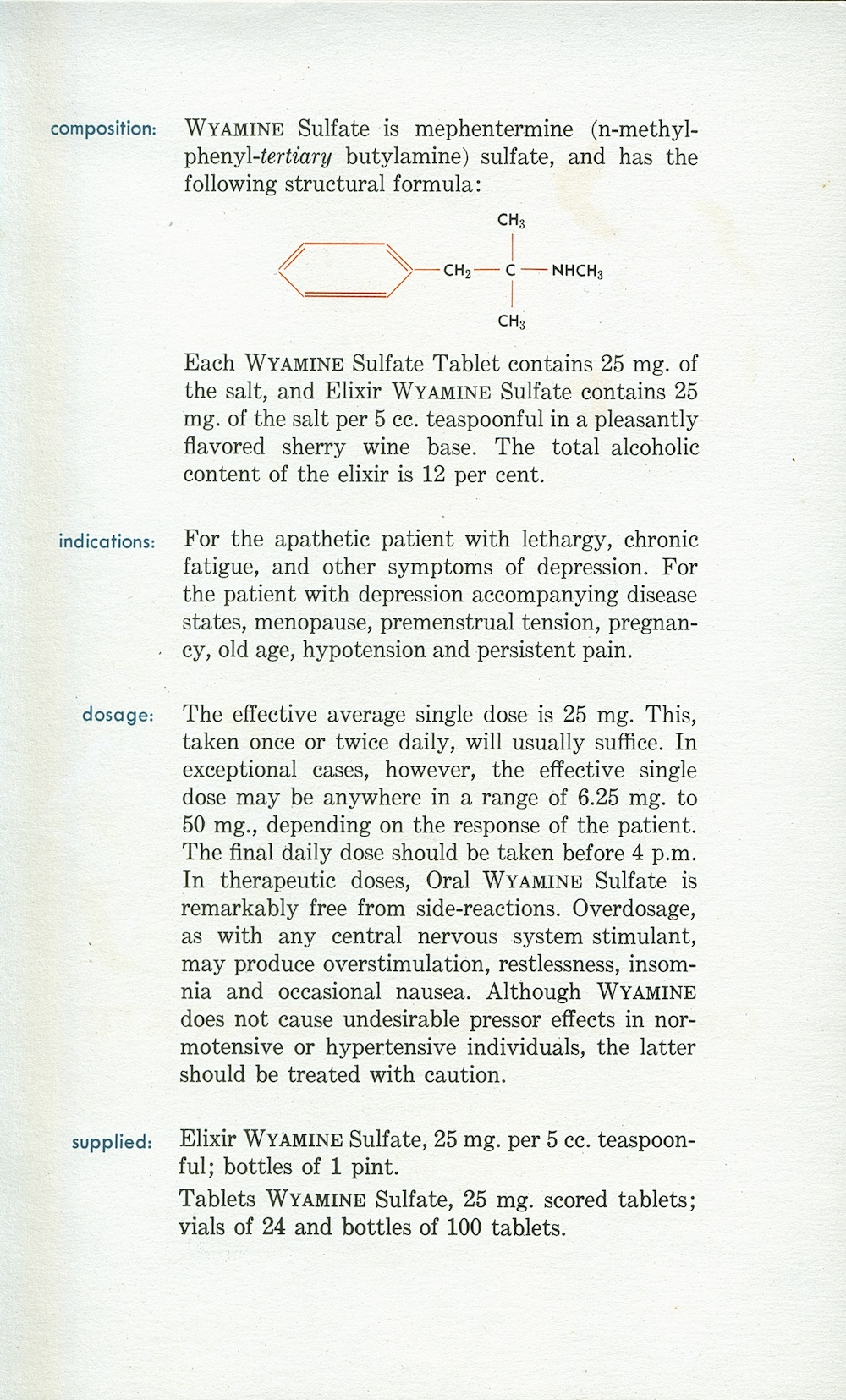Sixth page of an ad for Wyamine Sulfate, which contains a substituted amphetamine, marketed as an antidepressant, from the James Harvey Young Drug Advertising Collection.