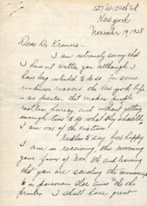 In one letter, dated 19 November 1928, Dr. S.Y. Chen, who was living in New York City at the time, writes to Kremers about life in the city and the pharmaceutical work he had done over the summer. Chen didn’t care for the fast pace of life in the city, writing, “For some unknown reasons the New York life is so peculiar that [it] makes people restless, hurry, and without getting enough time to do what they should. I am one of the victims.”