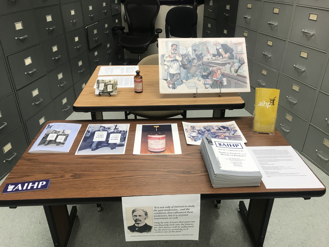 University of Wisconsin-Madison School of Pharmacy lecturer, Dr. Kate Rotzenberg, and the American Institute of the History of Pharmacy welcomed first-year pharmacy students enrolled in UW’s “Pharmacy in the Health Care System” class to AIHP’s Kremers Reference Files (KRF) last month.