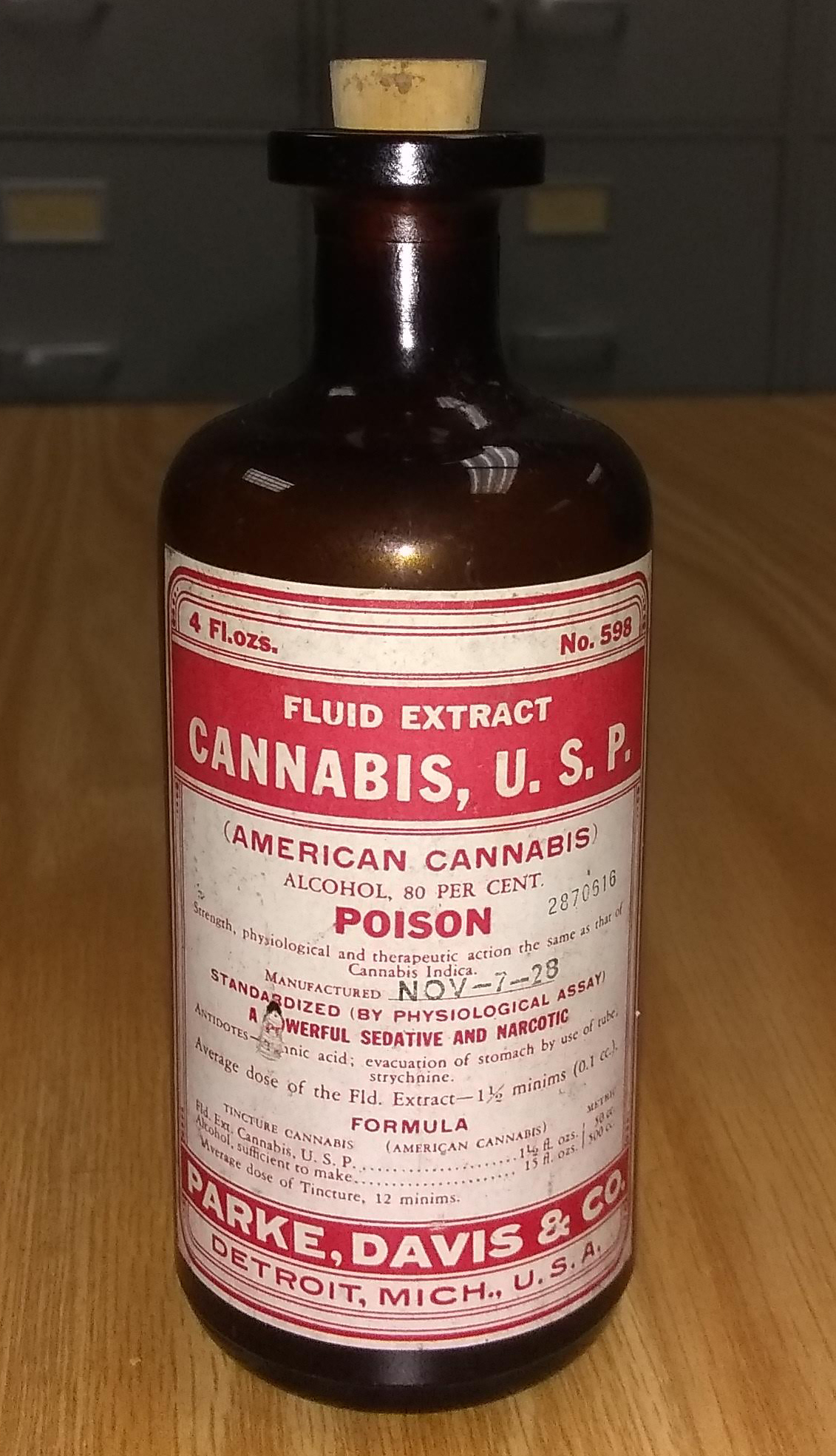 Fluid Extract Cannabis: Prescribed in the late nineteenth century for loss of appetite, inability to sleep, migraines, headaches, pain, involuntary twitching, excessive coughing, and treatment of withdrawal symptoms from morphine and alcohol addiction. Until 1937, cannabis products were legal to sell in pharmacies and drug stores, as long as they were properly labeled and regulated. During the 1930s, however, mainstream attitudes toward cannabis changed negatively and helped lead to the Marijuana Tax Act of 1937, which essentially outlawed the drug.