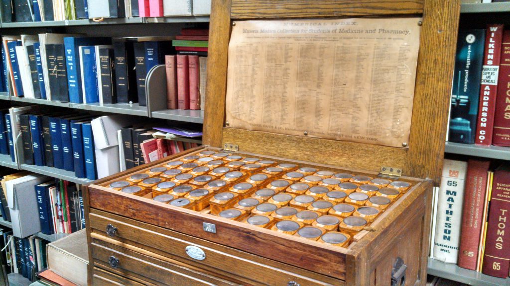 Chapel Hill. UNC School of Pharmacy: Open to the public during school hours. An exhibit case of pharmacy artifacts.